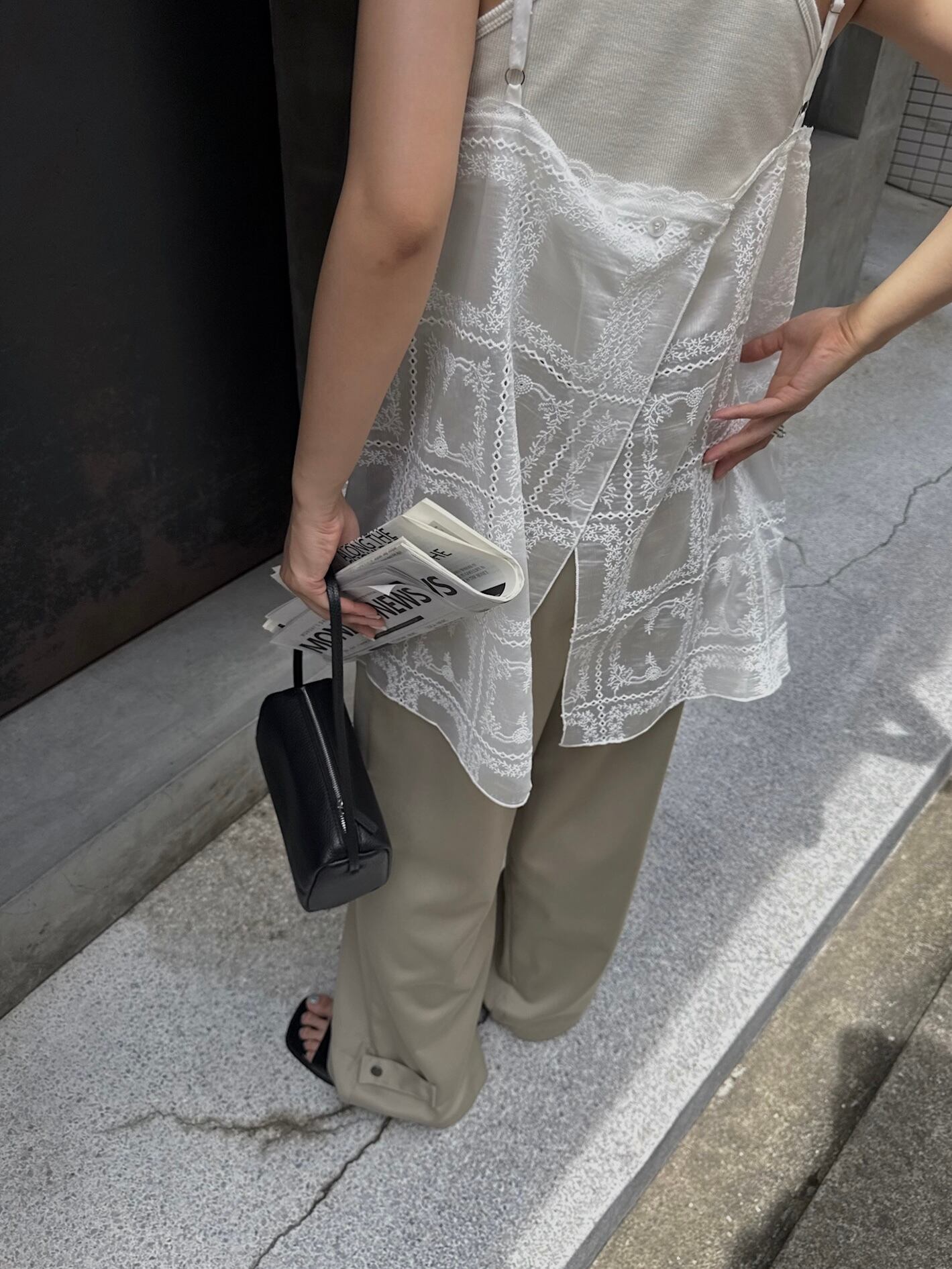 フラワー刺繍柄のシアー生地を使用したキャミチュニック。