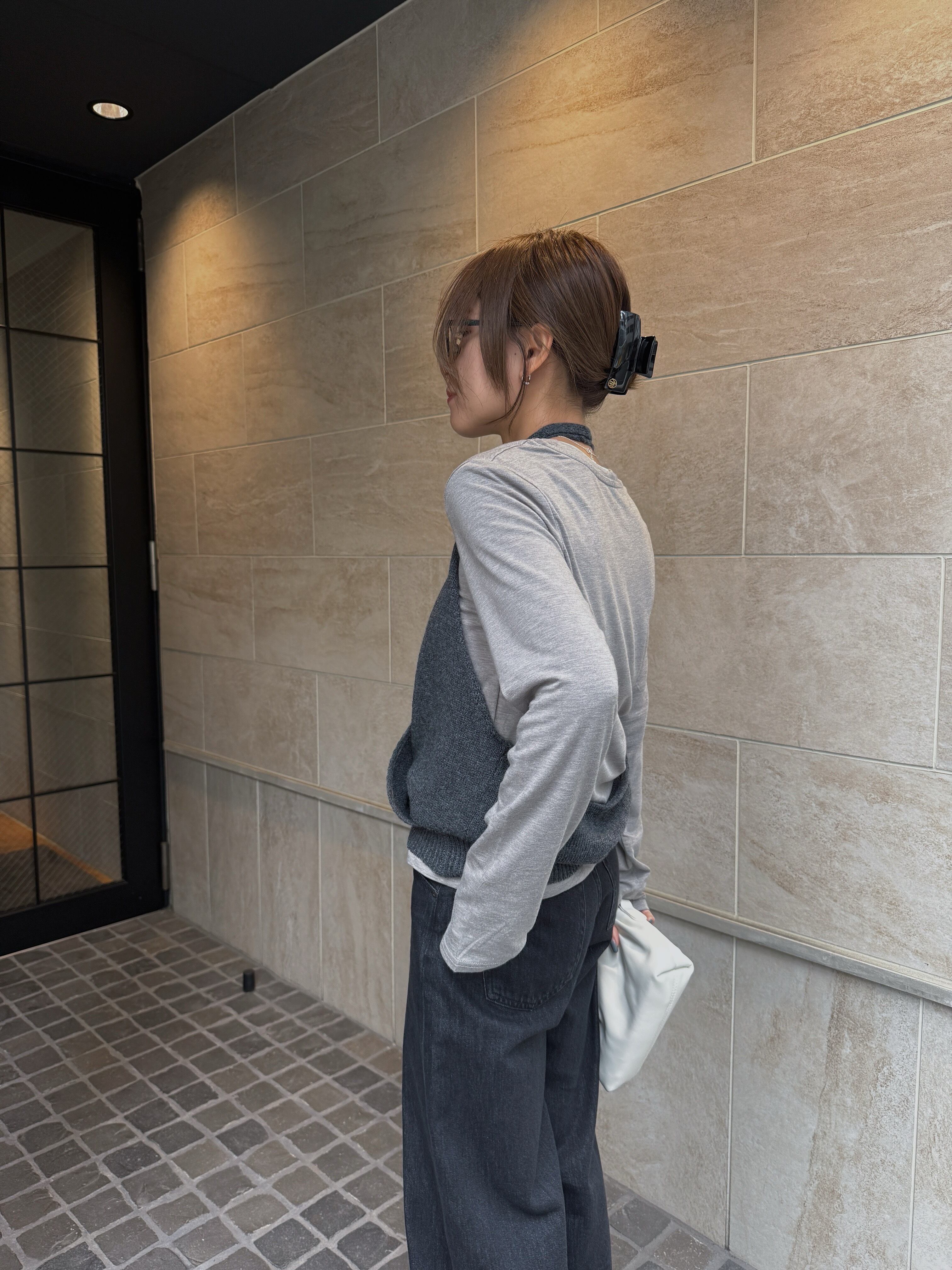 インナーに別のカラーをトップスを入れ、レイヤードすることも可能です。