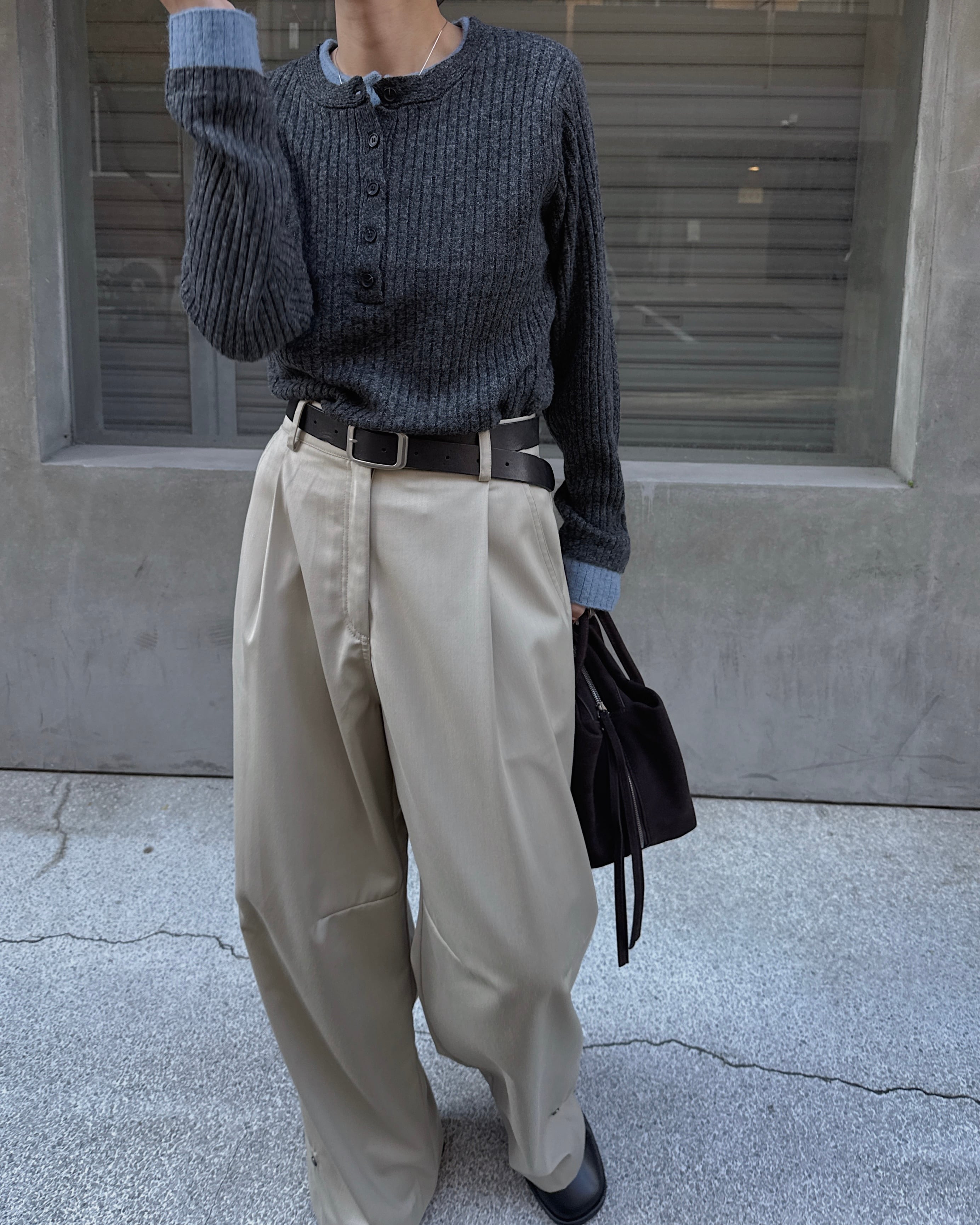 henley neck layered nep color knit