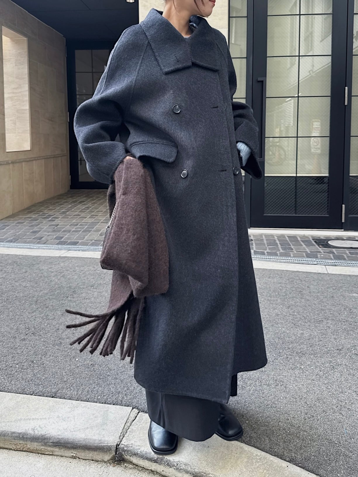 ・ロングコートは縦のラインを作ってくれるので