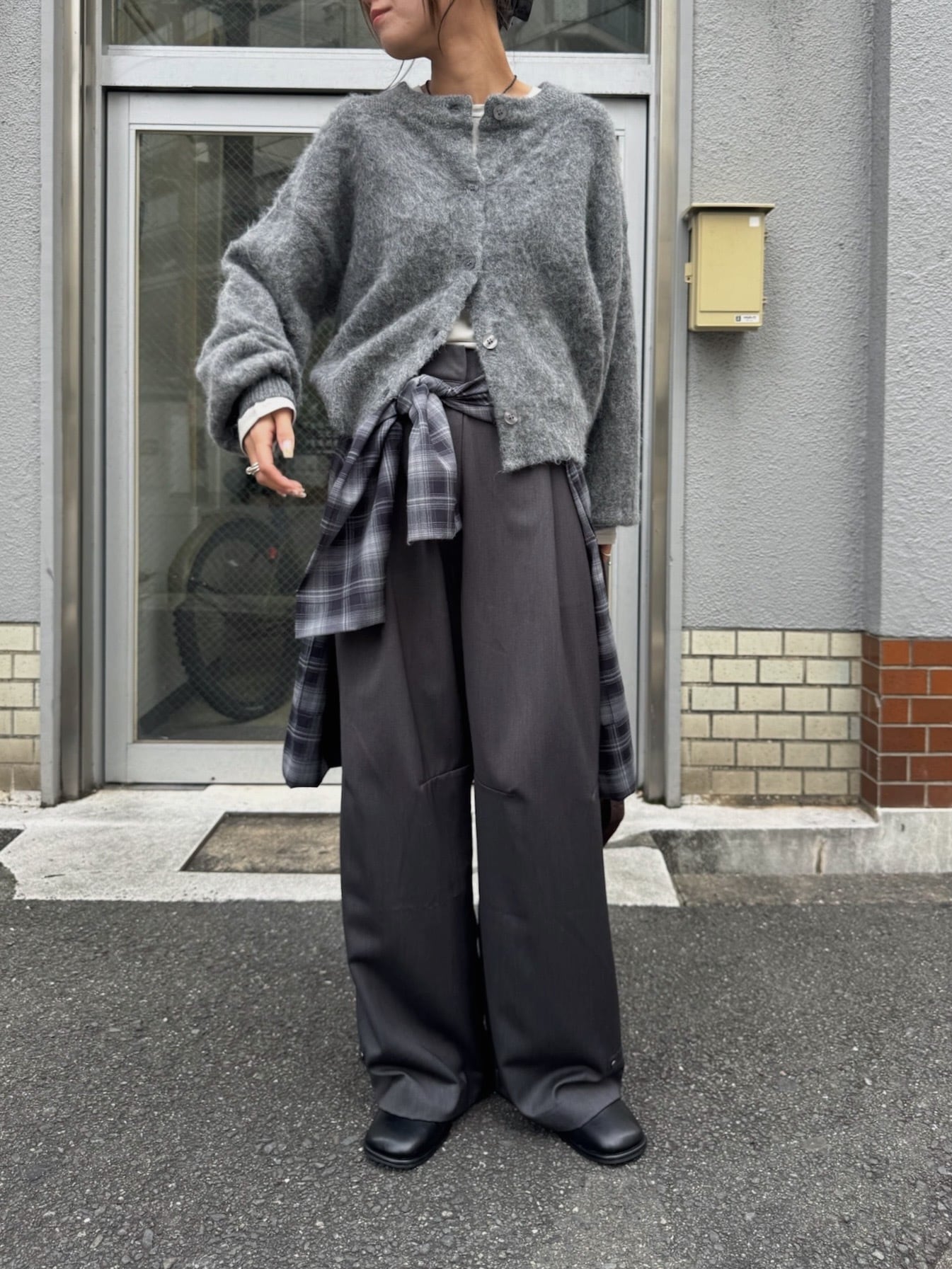 羽織りとしてはもちろん、ボタンを閉めてトップス風にも。