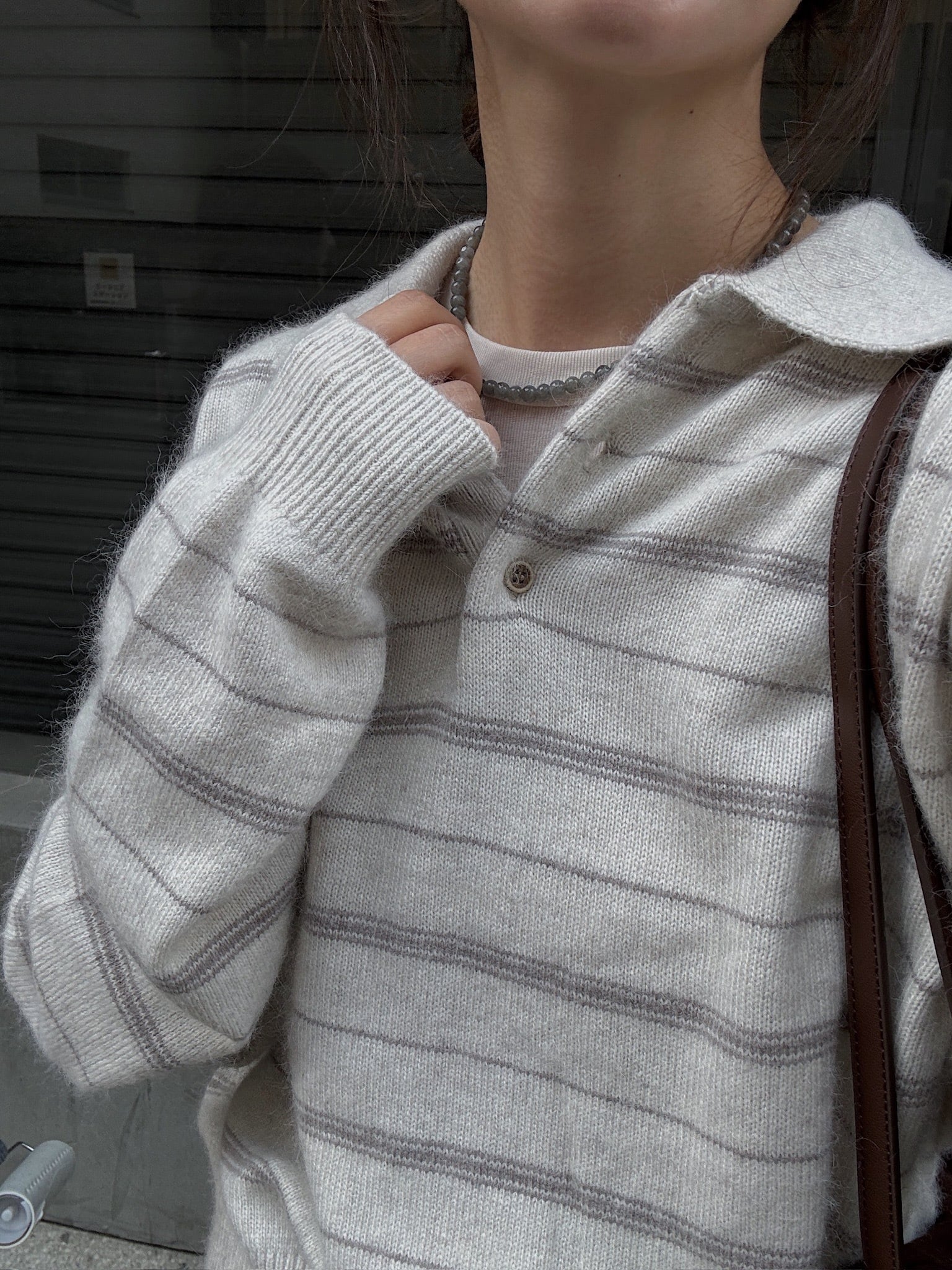 random border raccoon polo knit