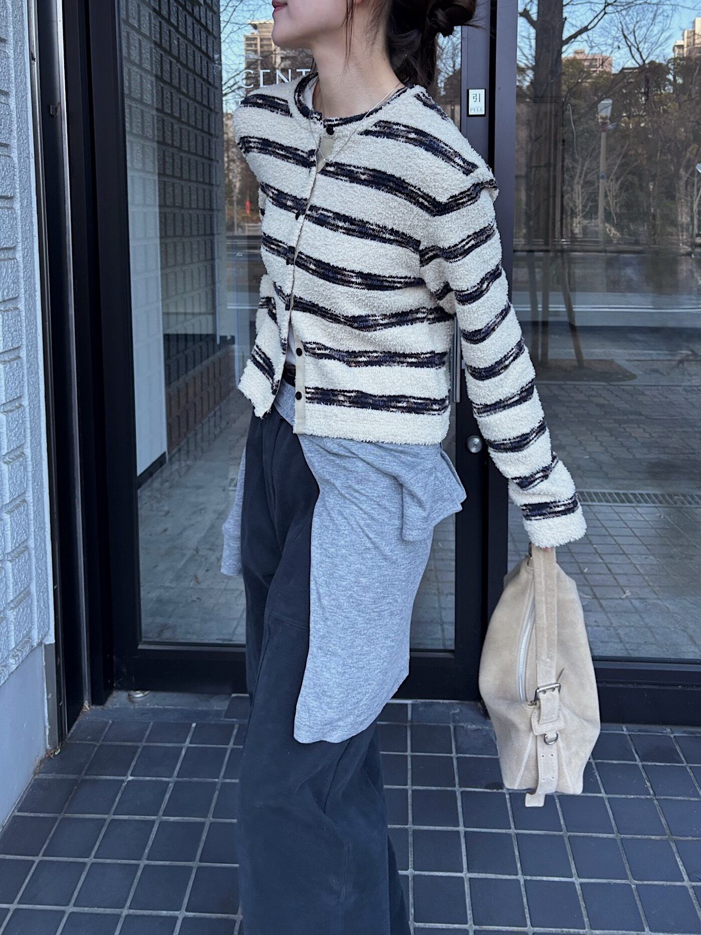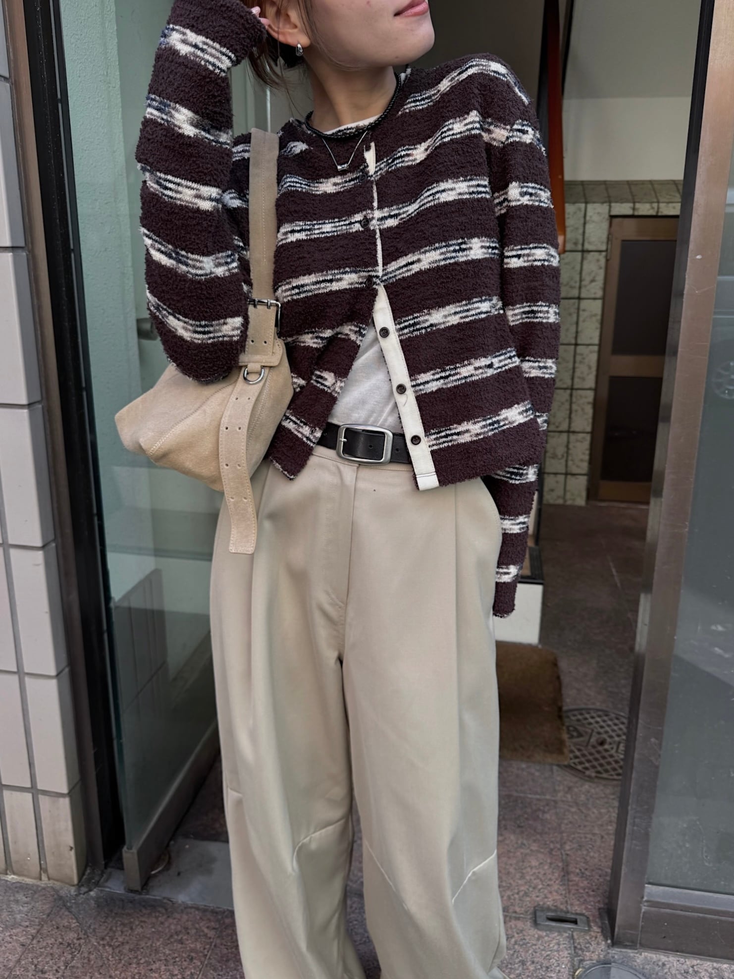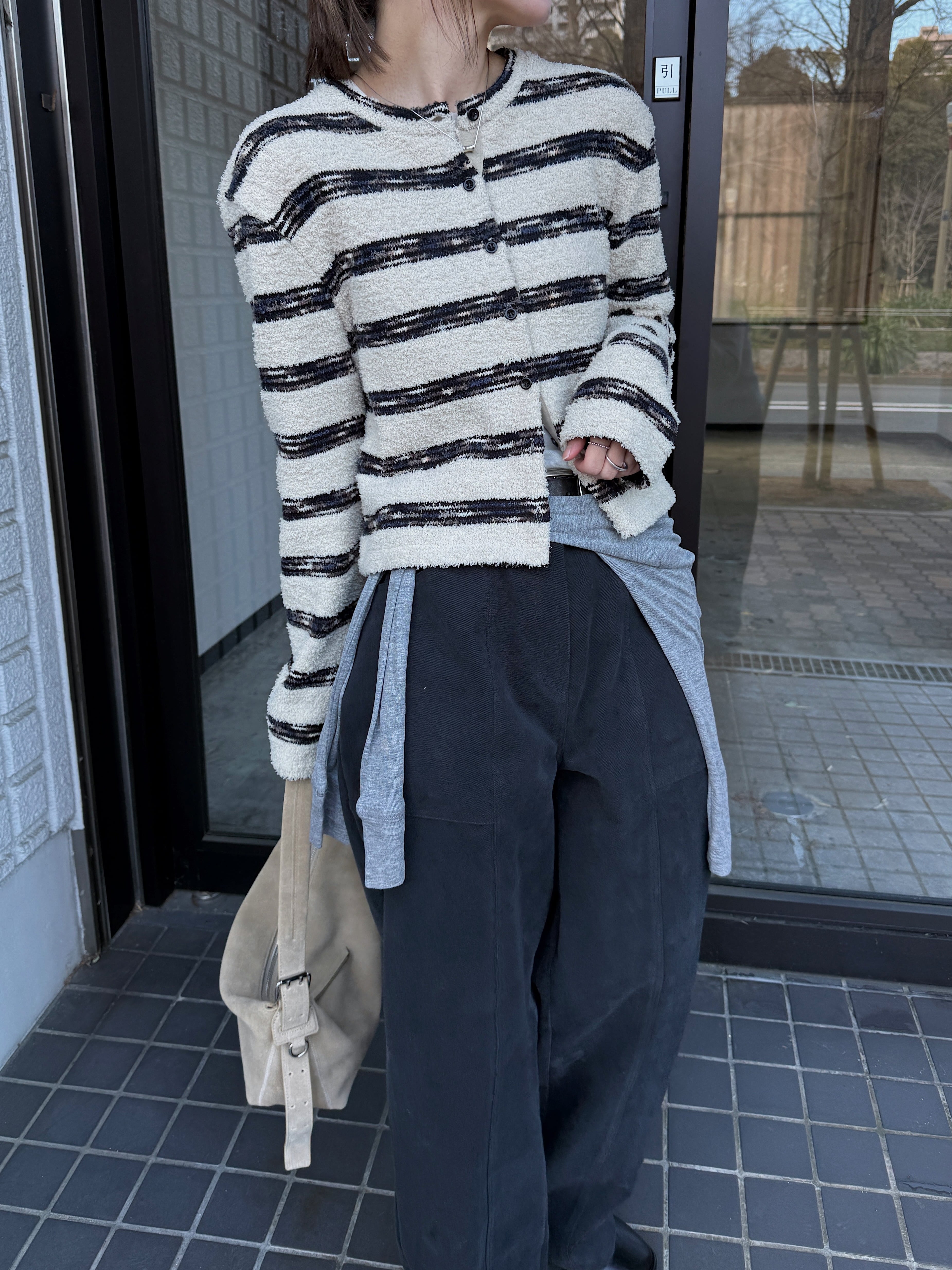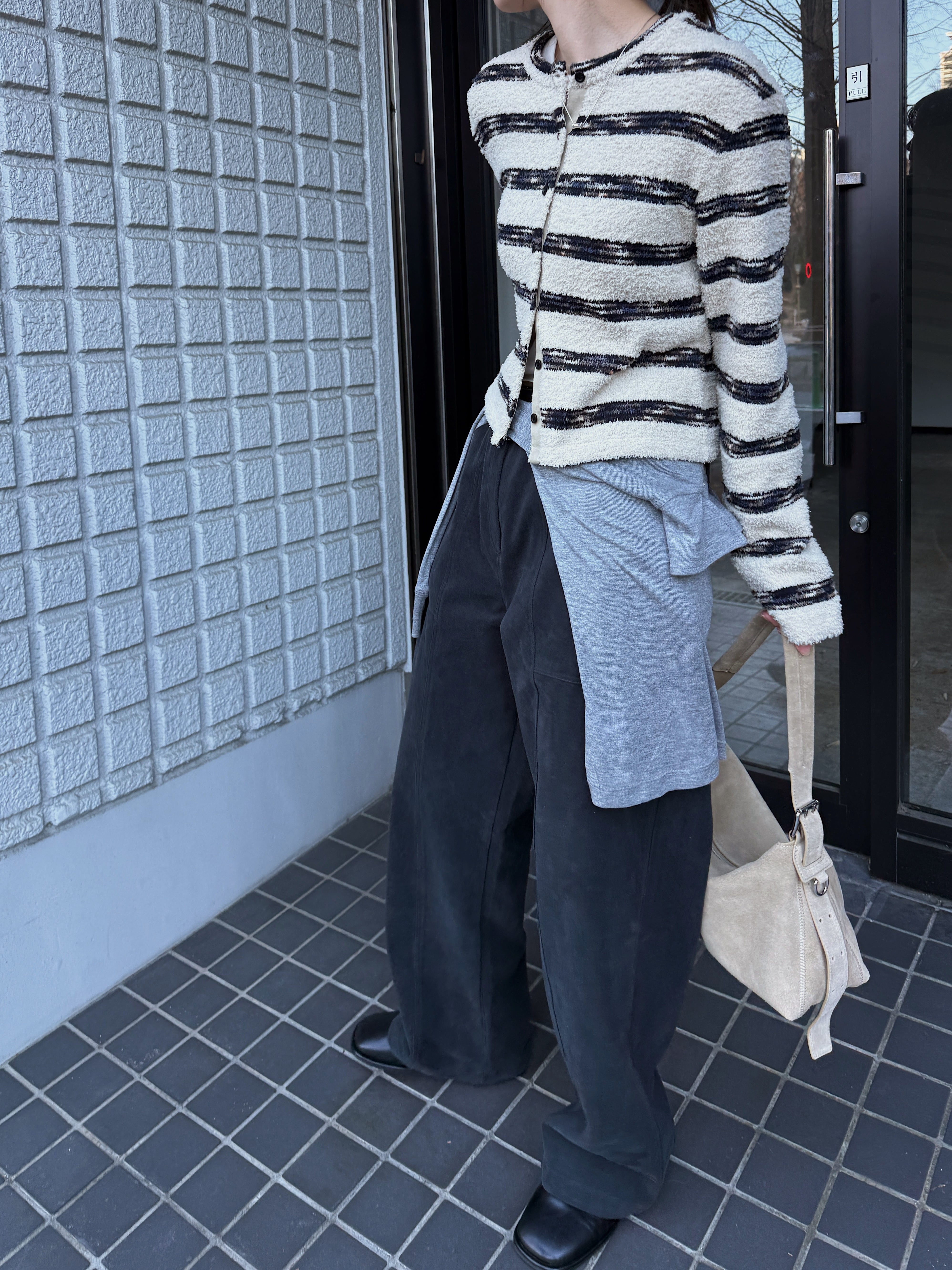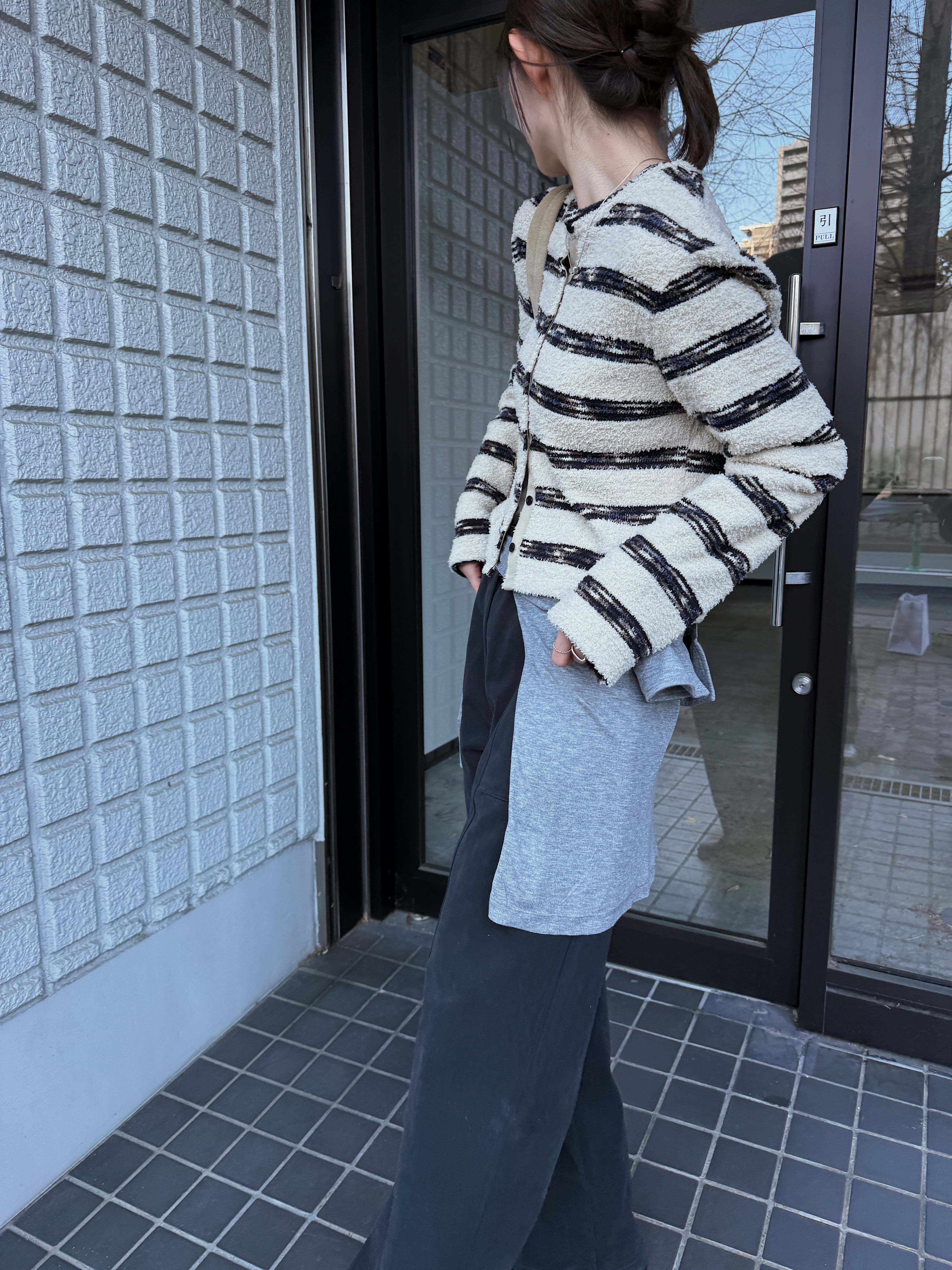 着ぶくれして見えないので、ボリューム感のあるボトムと相性抜群です。