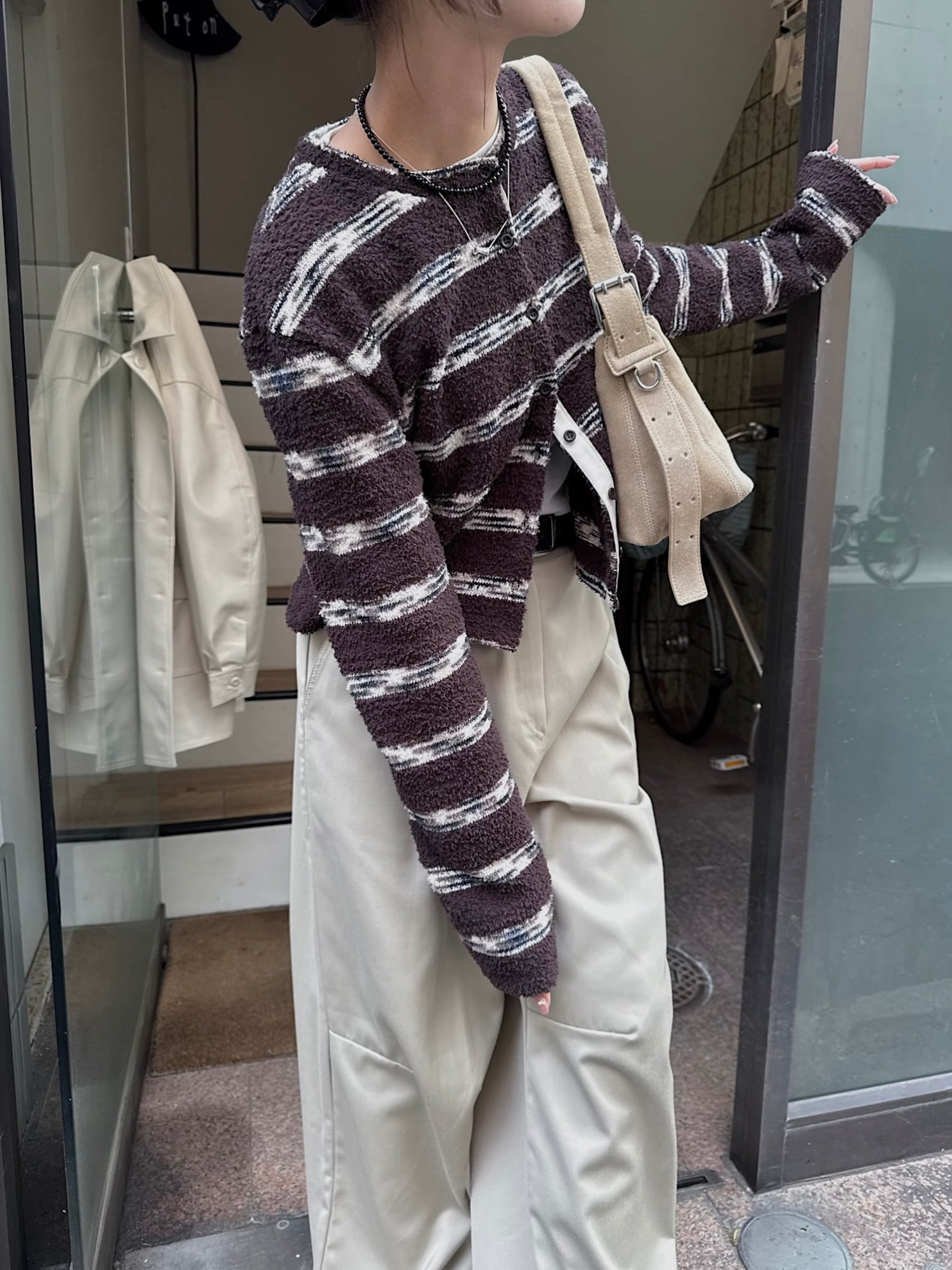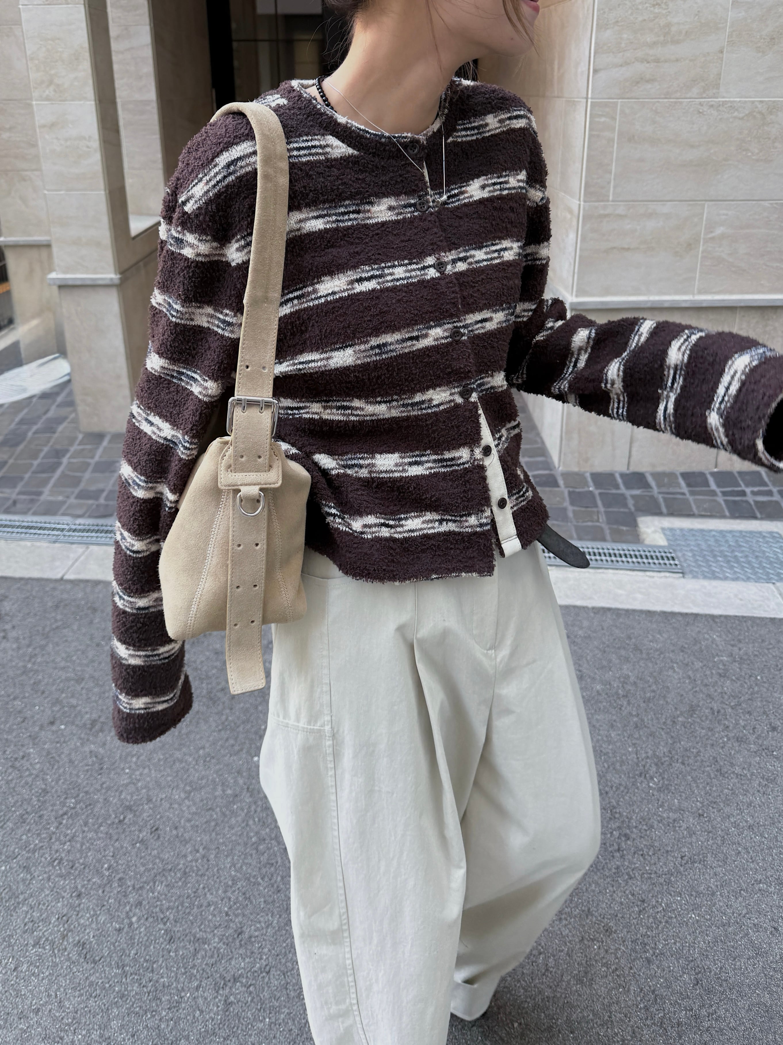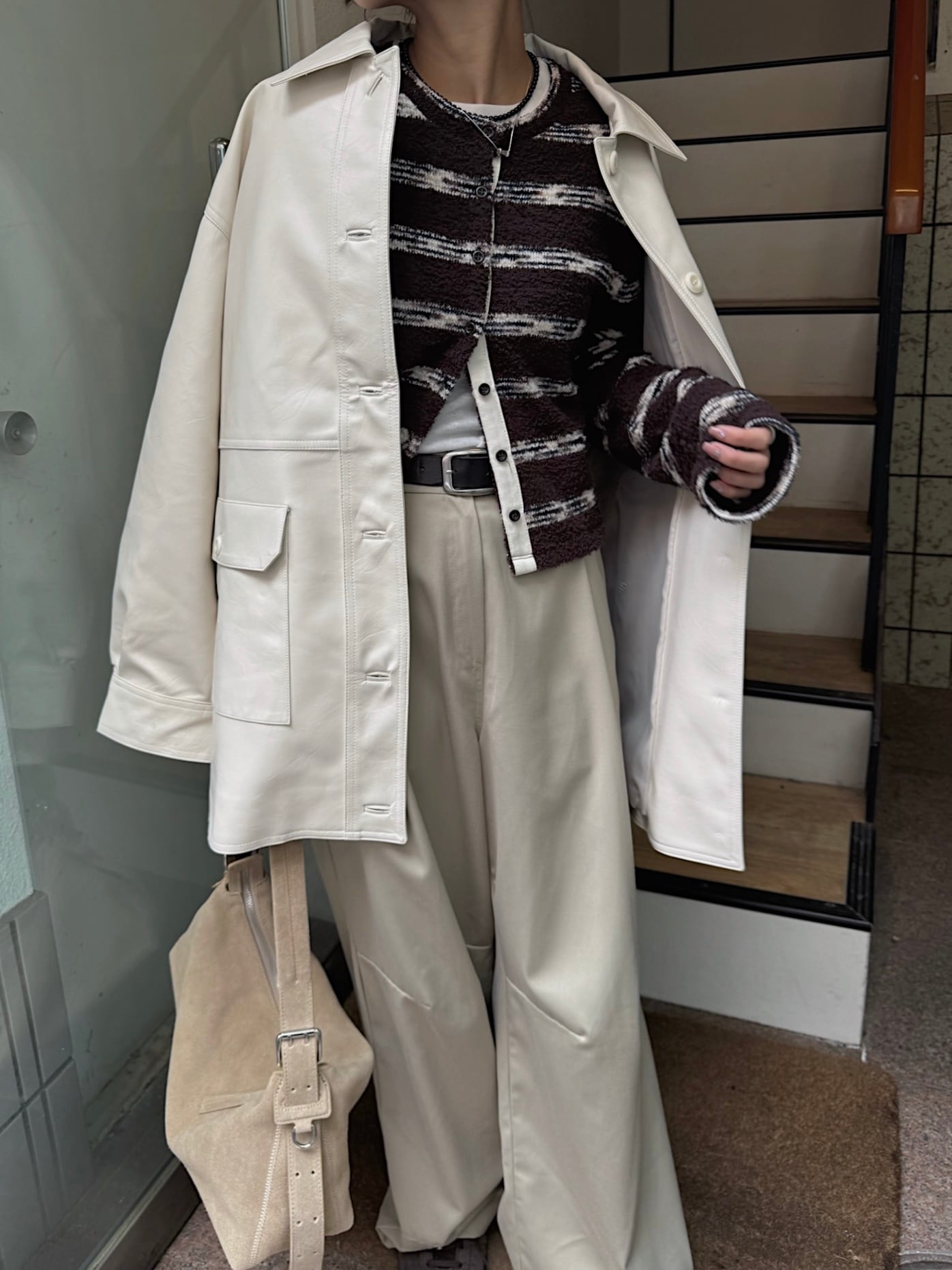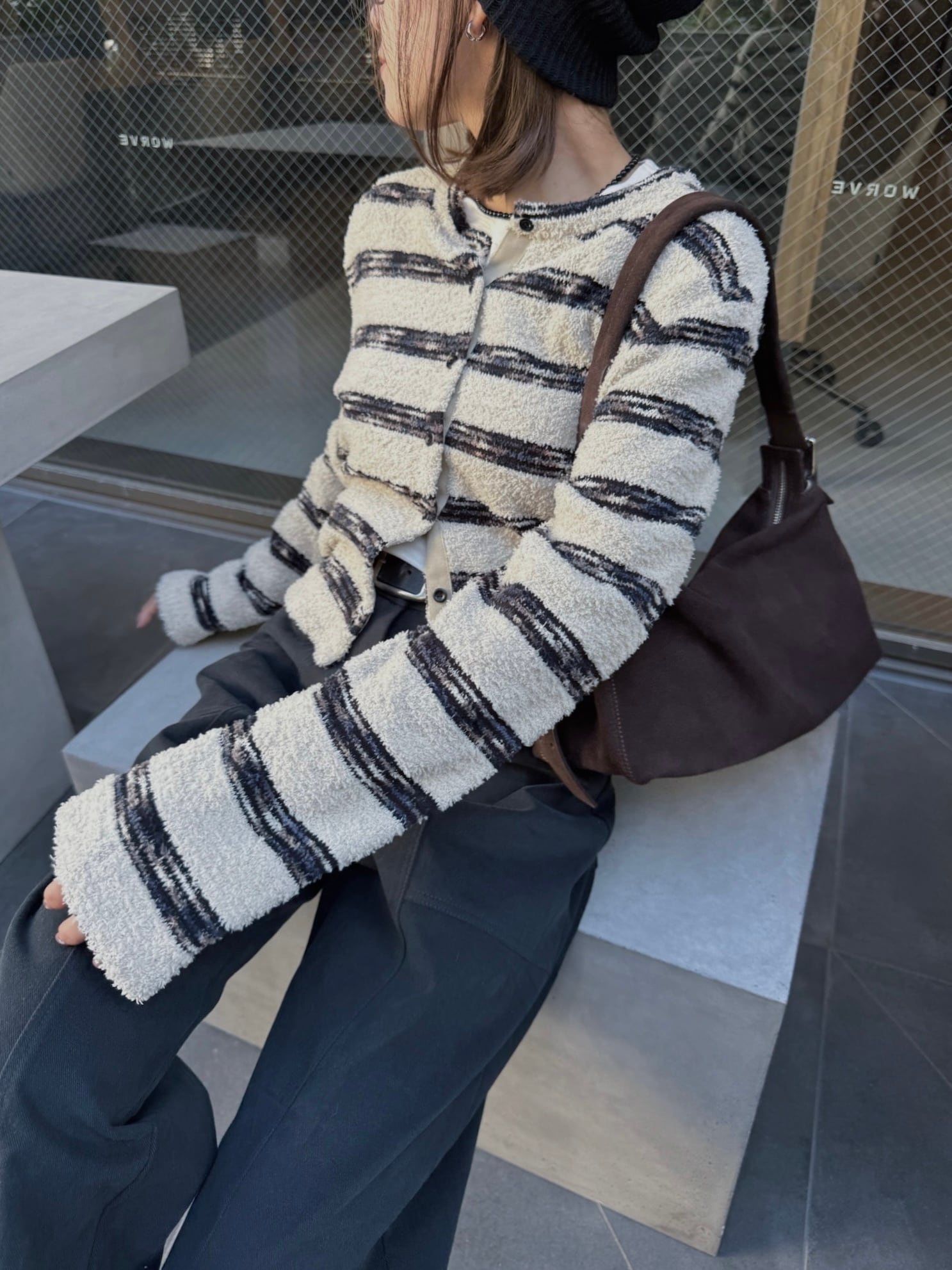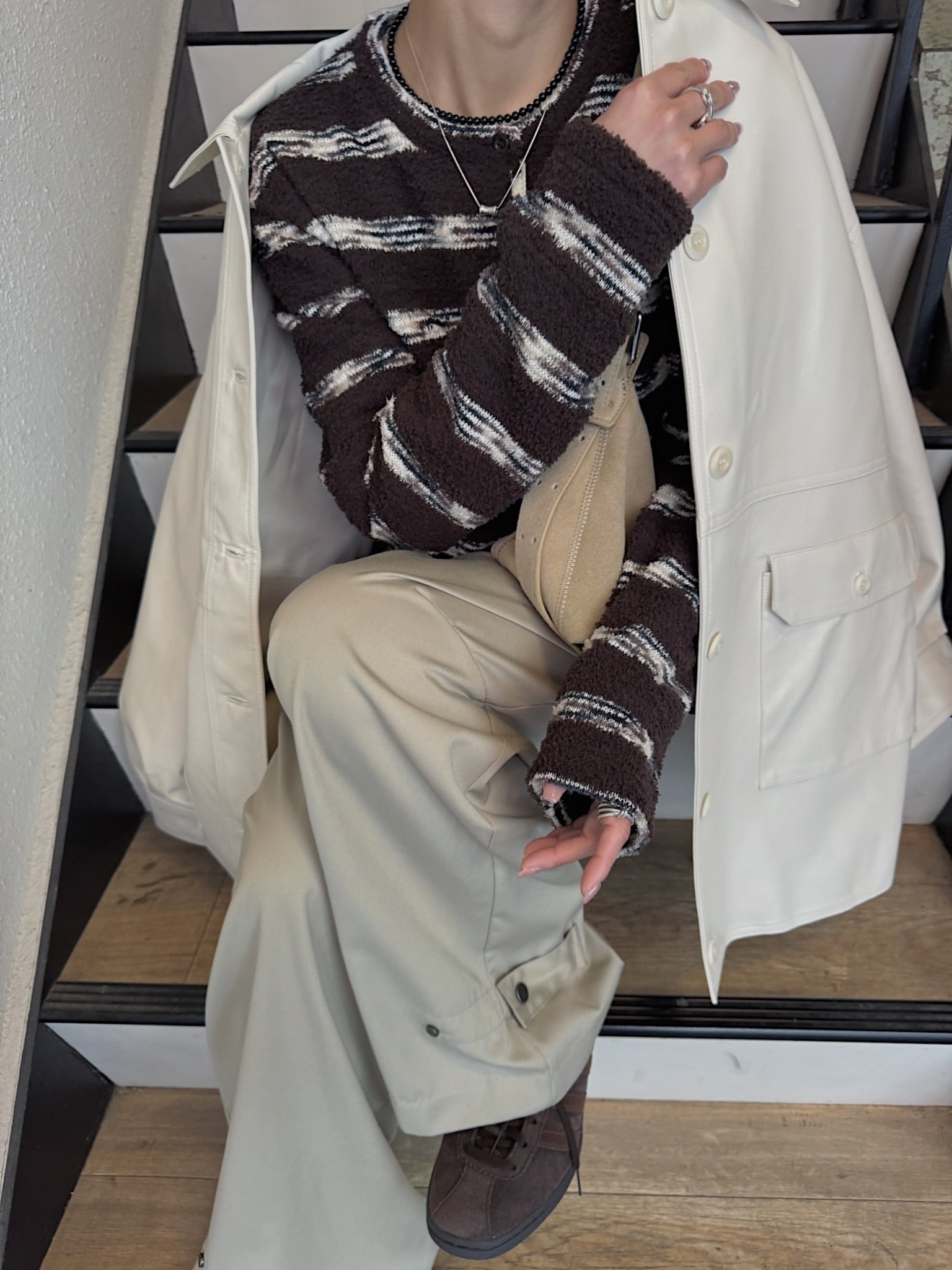 着ぶくれして見えないので、ボリューム感のあるボトムと相性抜群です。