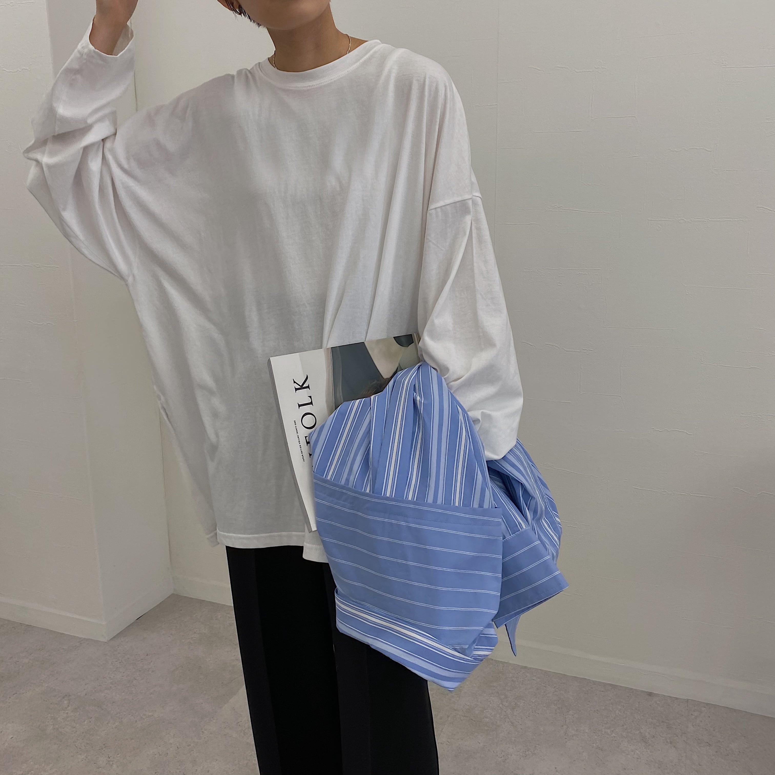 今の時期には春ニットやスウェットとのレイヤードスタイルにもおすすめの