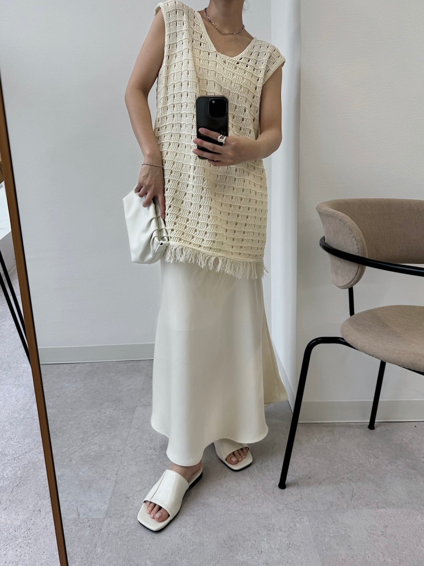 hem fringe block mesh knit